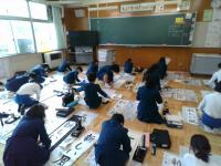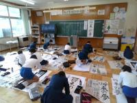 今日は3学期の始業式。その後各学級で校内書き初め大会が行われました。