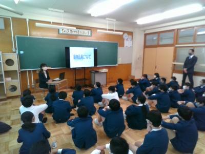 今日、学校薬剤師の加藤先生をゲストティーチャーとしてお招きし、6年生の薬物乱用防止教室を行いました。