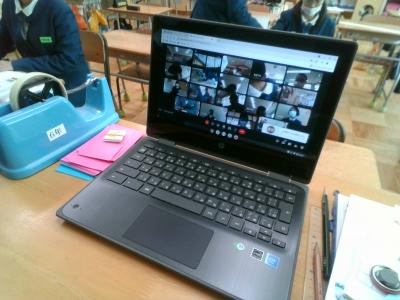 オンライン授業を見越し、6年生がグーグルミートを使った遠隔授業をしました。子どもたちは特別教室などに散らばり、パソコンからの指示に従い、パソコンを操作したり発表したりしていました。(6年だけでなく他の学年でも実践しています)