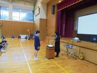 スポーツや学習,図画に書写といろんなことに頑張ってきた児童への表彰、そして校長先生からは人権週間についての話がありました。