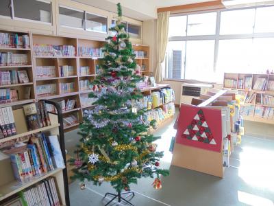 12月になり、街はクリスマスカラーに彩られていますが、学校の図書館もクリスマスの装いとなりました。