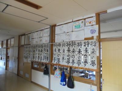 1,2年は硬筆,3~6年は全紙を使用した毛筆です。作品は明日まで教室前に展示します。