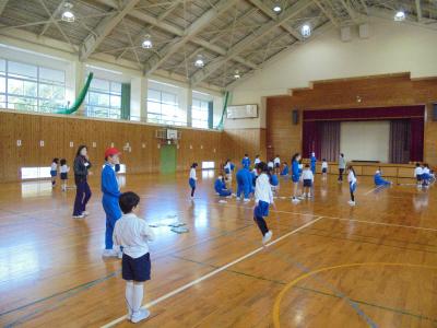子どもたちは,体育館だけでなく,ワークスペースでもなわとび運動に取り組んでいました。二重跳びやはやぶさなど,高学年はより高度な技に挑戦していました。