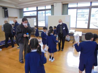 1年生の生活科で,おじいちゃんおばあちゃん(英田地区くらし安心ネットワークのみなさん)と,昔遊びで交流をしました。