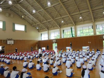 今朝は全校集会がありました。夏休みに頑張った作品の表彰などがありました。