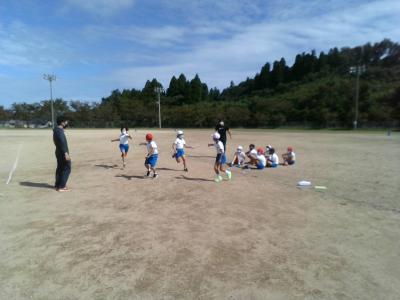 先週はあいにくの雨で体育館での全体練習だったのですが、今日は天気に恵まれグラウンドで練習することができました。