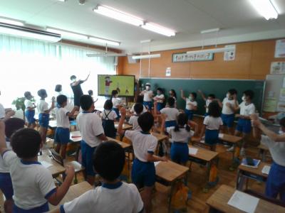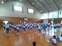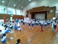 集会の後は、明日の運動会に向け、応援練習を行いました。天気予報では、明日は晴れ時々曇りの予想です。台風の影響が懸念されましたが、無事開催できそうな予報です。