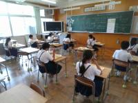 これまで4年生と5年生はランチルームで給食を食べていました。ランチルームには扇風機を設置していましたがクーラーがないため、今日からは冷房の効く自教室(4年生は蜜を避けるため少人数教室も使用)で給食を食べています。