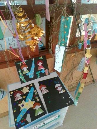 今日の授業では,それぞれがイメージする夜空を折り紙やシールを使って作り,夜になるのが楽しみになるような素敵な作品に仕上がりました。織姫と彦星が会うことができたらいいですね。