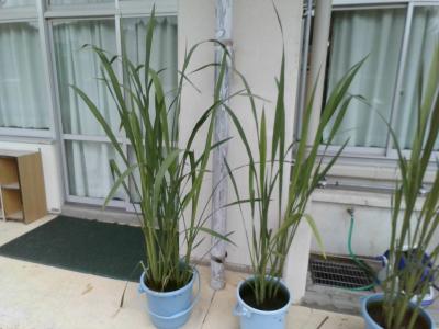 先日、町役場からいただき、3年教室横で育てています。いただいた時からかなり大きかったのですが、今では2m近くにまで成長しました。