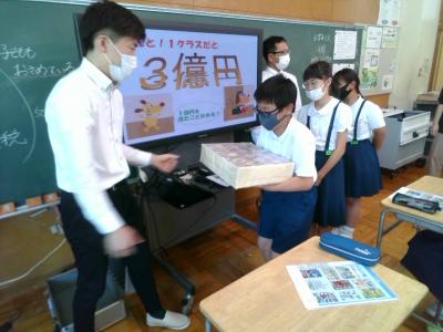 今日、金沢法人会のみなさんをゲストティーチャーとしてお招きし、「租税教室」を行いました。国税や地方税の種類や集められた税金の使いみちなどについて教わりました。ちなみに1年間で津幡町に納められる税金は約42億円だそうです。また1年間で小学生一人あたりに使われている税金は約88万円だそうです。