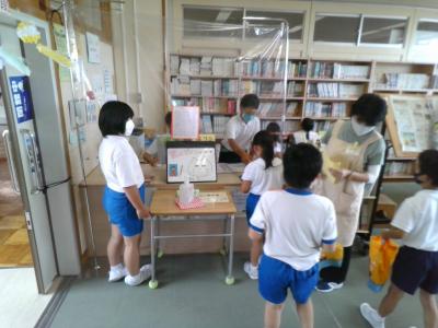 毎朝多くの子が本を借りに来ているのですが、お昼休みも図書室には多くの子が訪れています。本を借りる子、返しに来る子、テーブルのところで読書をしている子。