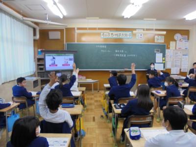NTTドコモさんとオンラインで結び,5・6年生を対象にしたスマホ・ケータイ安全教室を行いました。授業ではスマホやゲーム機などの長時間利用に伴うリスクについて考えました。SNSやショート動画,ゲームのボーナスなど,一度始めるすぐにやめられないものがネットの中にはたくさんあります。大人でも歩きスマホをしている姿をよく見かけます。こうしたリスクを少なくしていくためにはどうすればいいのか,みんなで意見を交換しました。