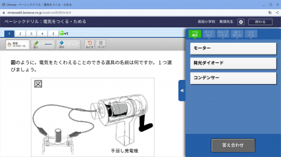 現在「電気のはたらき」の単元で、電気の利用や発電について学習しています。発電器を使って電気を起こし,ブザーを鳴らしたり豆電球を点けたりしました。