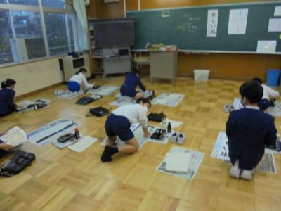 3学期の始業式の日には校内書き初め大会が行われます。冬休みの宿題にも書き初め練習がありますが,学期末を控え,どのクラスも書き初め練習に取り組んでいます。