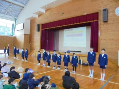 今日の終業式では,各学年の代表が二学期にがんばったことを発表してくれました。