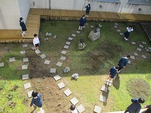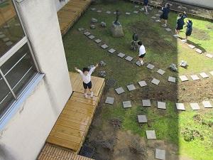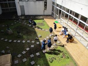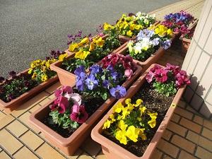先日から、中庭で遊ぶ子どもたちがふえてきています。子どもたちが楽しく過ごせる憩いの場所がまた1つできました。こぼれ種から植え替えたビオラの苗も花を咲かせ、心を和ませてくれています。