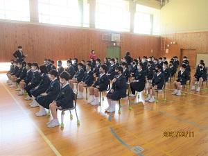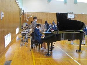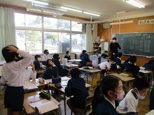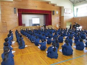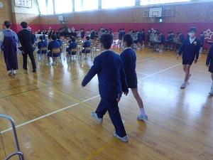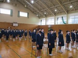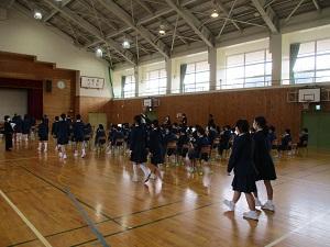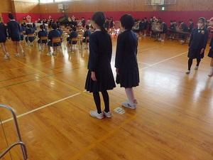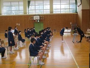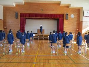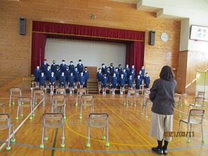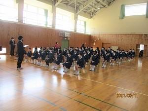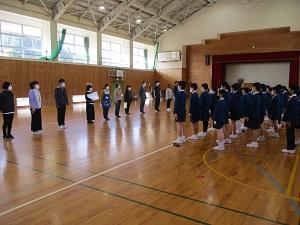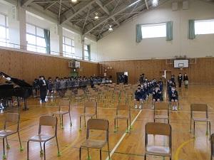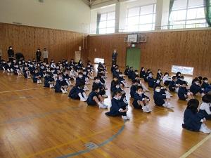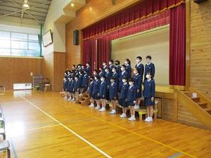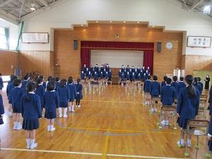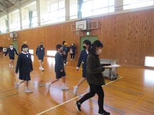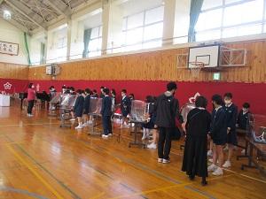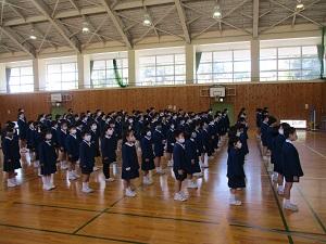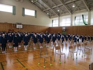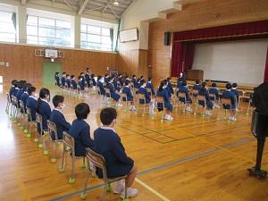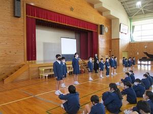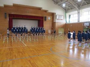 今日は、卒業式に向けて、はじめての在校生練習があり、2限目4・5年生が体育館で練習をしました。また、6年生は1限目に体育館で、入退場や起立・着席のタイミング等を練習していました。