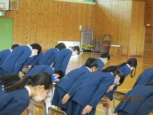 このコロナ禍において、ご来賓の方をお招きしたり全校児童が参加する卒業式はできませんでしたが、PTA会長様やご家族の皆様とともに、本日の卒業式を挙行できましたことを感謝申し上げます。