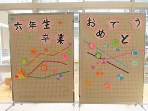 図書館を覗くと、壁面も6年生の卒業をお祝いする掲示になっていました。