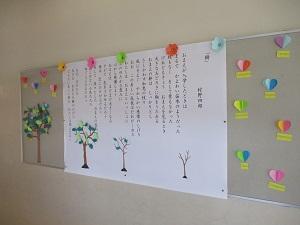 いよいよ卒業式の週となりました。卒業式まで今日を含めてあと4日。学校は、まさに卒業式に向けて盛り上がってきています。校内のすてきな掲示をご紹介します。
