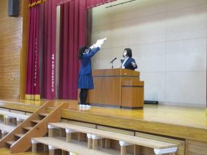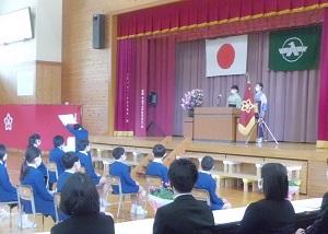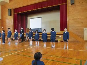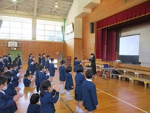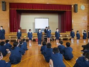 次に校長先生のお話の中で、1年を振り返り、各学年の代表の子たちに、この一年で自分が成長したことやがんばったことを発表してもらいました。最後に生徒指導担当から、春休みの生活で気をつけてほしいことをお話していもらいました。