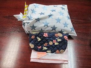 わたしの大好きな「紺色」のペンケースと職員室用の台ふき、そして今、産休でお休みしている昨年の担任には、赤ちゃん用のタオルエプロンです。以前「何色が好き」と聞かれたことがあったのですが、ちゃんとそれは、私が好きな色のケースを作るために聞いてくれたのでした。