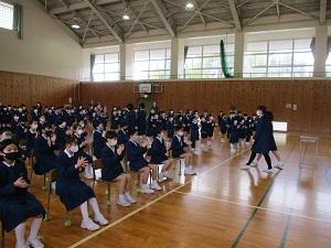 今日は、4・5・6年生で卒業式の全体練習をしました。6年生の素晴らしい姿に、4・5年生も気持ちが引き締まり、緊張感のあるよい練習になりました。