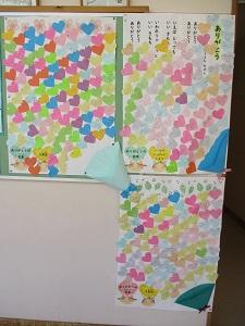 2月から、毎日お昼に放送してきた「ありがとうの花束~ハートで感謝の気持ちを伝えよう~」の取組です。みんなから募集したありがとうの花束が3束になりました。とっても嬉しいですね。