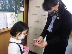 卒業式まで、あと5日。今日の朝読書の時間には、図書委員会の5年生から6年生に素敵なしおりのプレゼントがありました。