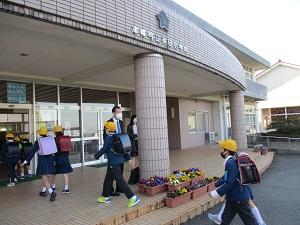 今日は卒業式前日。少し寒い朝でしたが、あがたっ子たちは今日もきちんと並んで登校しています。6年生にとっては最後の集団登校、今日は検温カードを忘れた人が1人もいませんでした。素晴らしいですね。