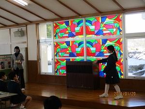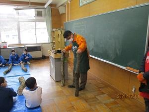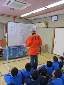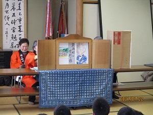 最後に、この会の皆さんがどうしてこのような紙芝居を子どもたちに伝えたいと思ったかという話をされました。「何かを達成するために、粘り強く『我慢』することの大切さをみんなに分かってもらいたいからです」ときっぱりとおっしゃったその言葉、そしてはっぴの背中に書かれていた「河合谷」の文字に込められた思いを知り、とても心を打たれました。3年生は、今日学んだことを劇にして、6年生を送る会で全校に伝える計画を立てています。今日の河合谷地区の皆さんが伝えたかったことをしっかりと劇で表してくれることでしょう。