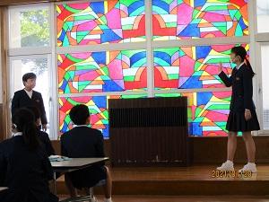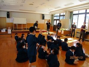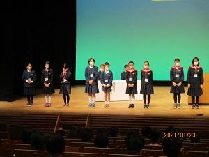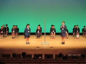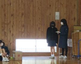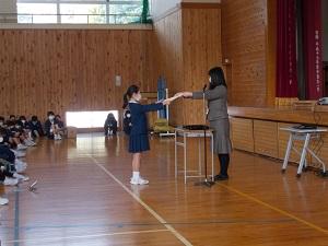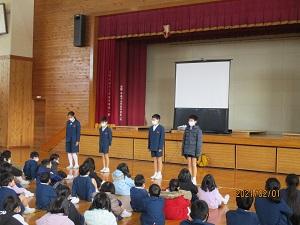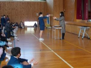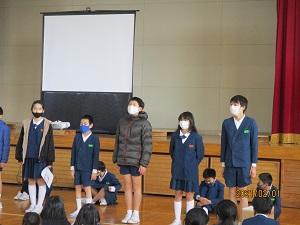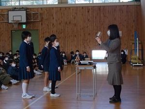 さて2限目には、2月の学校集会がありました。表彰伝達では、書き初め大会、英語スピーチコンテスト、消防標語の表彰がありました。