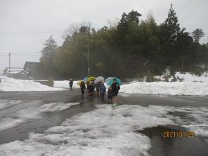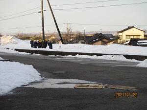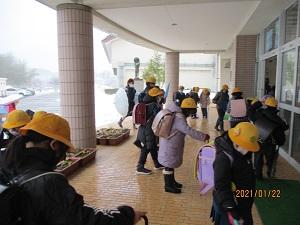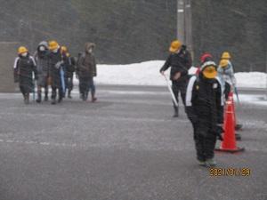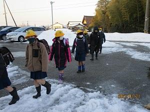 今日はとっても風が強くて、時折吹雪いて大変な朝でした。たくさんのお子さんが、お家の方におくっていただきました。ありがとうございました。