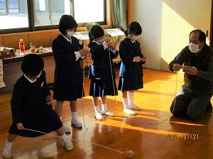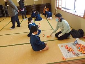 さて1月21日木曜日、1年生は、英田公民館で英田地区くらし安心ネットワークの皆さんと昔遊びの交流会をしました。新型コロナウィルスに配慮し、短い時間でしたが多くの遊びを教えていただくことができました。
