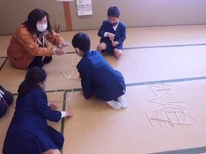 和室では、お手玉・おはじき・竹かえし、ホールでは、けん玉・めんこ・こま、そして体育館では竹とんぼを教えていただきました。くらし安心ネットワークの皆さんも、汗をかきながら、一生懸命指導してくださいました。最後の感想タイムでは、子どもたちが楽しかったことや上手にできた時のコツについて話をする姿が見られました。子どもたちは、どの子も集中し、夢中になって、全身を使って遊んでいたように思います。やはりこのような遊びをすることは器用さも育つし、根気や粘り強さも付くように思いました。昔遊びを子どものうちにすることは、とてもメリットがあるように思います。ぜひ、今後も学校だけでなくお家で親子で挑戦してみてはいかがですか?