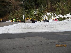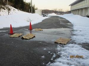 滑って転ばないように、麻袋を敷いたりコーンを立てて近づかないようにしたりしましたが、通学路ではたくさんのお友達が滑ったようです。気をつけて登校してくださいね。