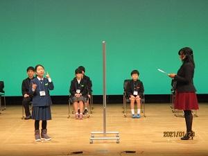 今日のぐんぐんタイム(掃除後の帯タイム)は、今週土曜日に英語スピーチコンテストに参加する児童のスピーチを聞く校内発表会がありました。4~6年生がランチルームに集まり、予選の結果代表に選ばれ練習してきた5年生2名、6年生6名のスピーチを聞きました。