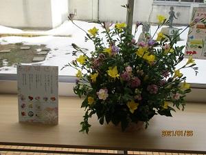玄関に飾られているエアリーフローラが、とてもいい匂いです。子どもたちが「いい匂い~」と言ってはのぞき込んでいます。玄関には、ある保護者の方がもってきてくださったお花を、職員がとても素敵に飾ってくれました。外はまだ少し寒いですが、英田小の玄関は、春がいっぱいです。
