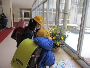 今日は放射冷却で、とても寒い朝でしたが、日中はポカポカ四温晴れの一日でした。雪もだいぶ少なくなり、やっと玄関から子どもたちの登校の列が見えるようになりました。玄関には、エアリーフローラという石川県産のフリージアが生産者の方から届き、とてもよい香りが広がっていました。生産者の皆様、ありがとうございました。