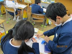 困っている友達に教えてあげながら、頑張っていました。最後は、みんなができていたようです。みんなで協力しながとても粘り強く、最後まで頑張っていました。