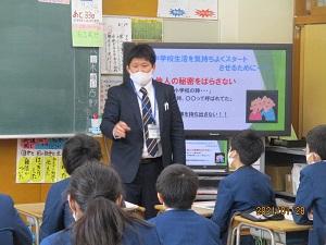 今日の2限目、6年生は、ゲストティーチャーにスクールカウンセラーの藤解先生、津幡中学校の城戸先生、橋口先生をお迎えして、「心の健康教室」を開きました。