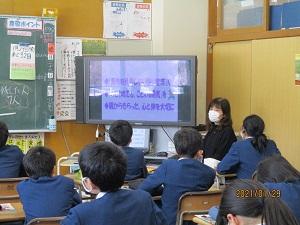 道徳と国語の授業でした。道徳では自分の思いをほぼ全員が発表できていました。国語では、辞書で調べながら、言葉の学習をしていました。とても落ち着いた授業の様子が見られました。