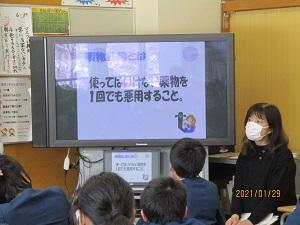 特にたばこやアルコールについては、依存性が高いことや子どもの方が身体に与える影響が大きいことなどをとても分かりやすく教えていただきました。それから、ドラックなどの違法薬物についても、今の時代簡単にネットで手に入れることができてしまうこと、でもその後どんな恐ろしく悲しいことがことが待ち受けているかということもしっかり考えてほしいとおっしゃっていました。きっぱりと断る勇気、それができないない時は、とにかくその場から逃げること、1人1人の命はとても大切なものだから、頭の片隅に今日学んだことを覚えていてくれたら嬉しいともおっしゃっていました。