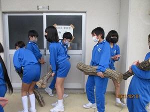 本校では、県央農林総合事務所「こども森の恵み推進事業」に参加しており、毎年しいたけの植菌をしています。例年6年生がしていたのですが、しいたけは植菌してから2年後に木からキノコとして出てくるため、自分の植菌した木のしいたけを食べることができませんでした。そこで今年から、4年生にも植菌してもらい、2年後自分たちのしいたけを食べてもらえるようにしました。