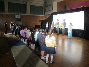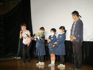 最後に、劇団の皆さんに感想を伝えたり、6年生から花束をお渡ししたりもしました。教室でみんなが書いた感想も後でお渡ししました。とても喜んでくださいました。