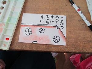 フェルトペンで書く「ふじ山」の文字が力強いですね。フェルトペンは書き直しができず難しかったでしょう。冬休みにもっともっと練習して、じょうずになってくださいね。
