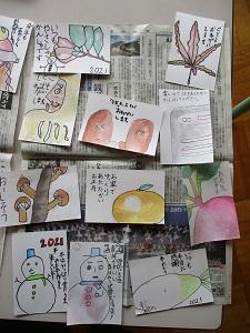この年賀状を見ているだけで、なんだか心が温かくなってきます。皆さんのお家に届く賀状の中には、やや拙いものもあるかもしれませんが、子どもたちなりに一生懸命描いたものです。どうぞ温かく広いお心で見ていただければ幸いです。