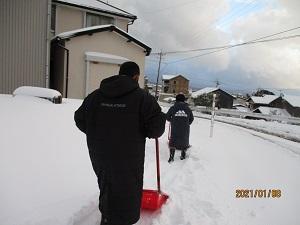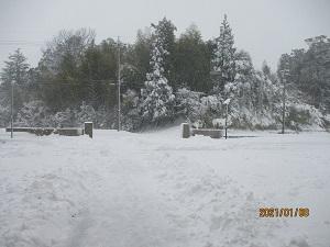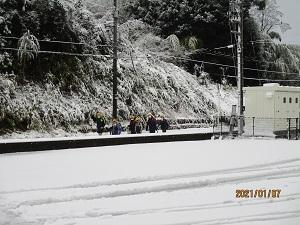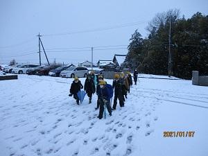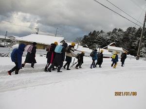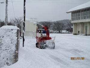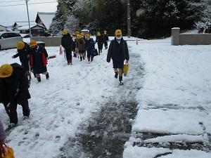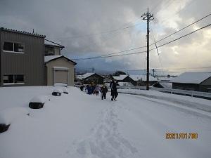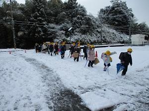 集団登校では、上の学年の子達が下級生をかばいながら、一生懸命歩いてきました。保護者の方も心配で一緒に歩いてくださるところも多くありました。本当にありがとうございました。学校に着いた高学年の子どもたちは、すぐに除雪を手伝ってくれました。おかげで学校の玄関前や正面から公民館への歩道や学童側の歩道あたりまでなんとか除雪できました。しかし、学校へ上ってくる道の除雪が追い付かず、車で送ってくださった保護者の皆さんには、ご迷惑をおかけしました。下校時までには業者さんに前の道を除雪してもらうことができました。