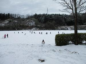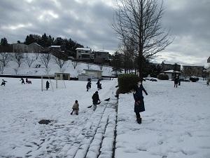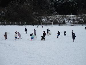 子どもたちは早速、運動場で朝から雪遊びをしています。長休みも、昼休みも、元気に遊ぶあがたっ子たちです。